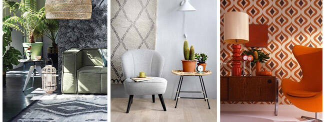 De retro woonstijl heeft misschien wel één van de meest opvallende en kenmerkende kleuren en patronen, en dat bedoelen we positief! Kleuren en patronen spelen een belangrijke rol in het retro interieur. Kleuren die we veel zien zijn oranje, rood, groen, (oker)geel en bruin. Deze kleuren geven je interieur dat typische retro sfeertje, daarnaast zijn de kleuren warm en creëren ze direct een gezellige sfeer in huis. Een combinatie van meerdere kleuren is kenmerkend voor deze stijl, zoals bijvoorbeeld het combineren van verschillende kleuren stoelen rondom de eetkamertafel.Bij een retro interieur hoef je juist niet vast te houden aan één bepaalde accentkleur. Wanneer de basis rustig is kan er helemaal los worden gegaan met verschillende kleuren accessoires en meubels!